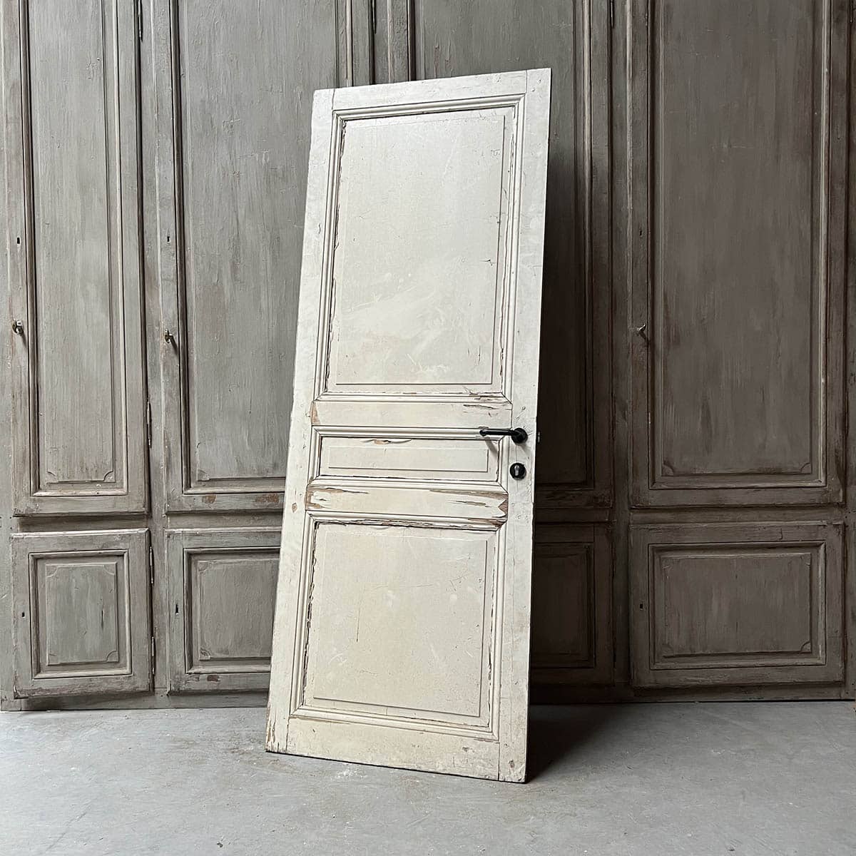 This antique door, measuring 90 cm wide by 239 cm high, is a true piece of history, adding a touch of elegance and character.