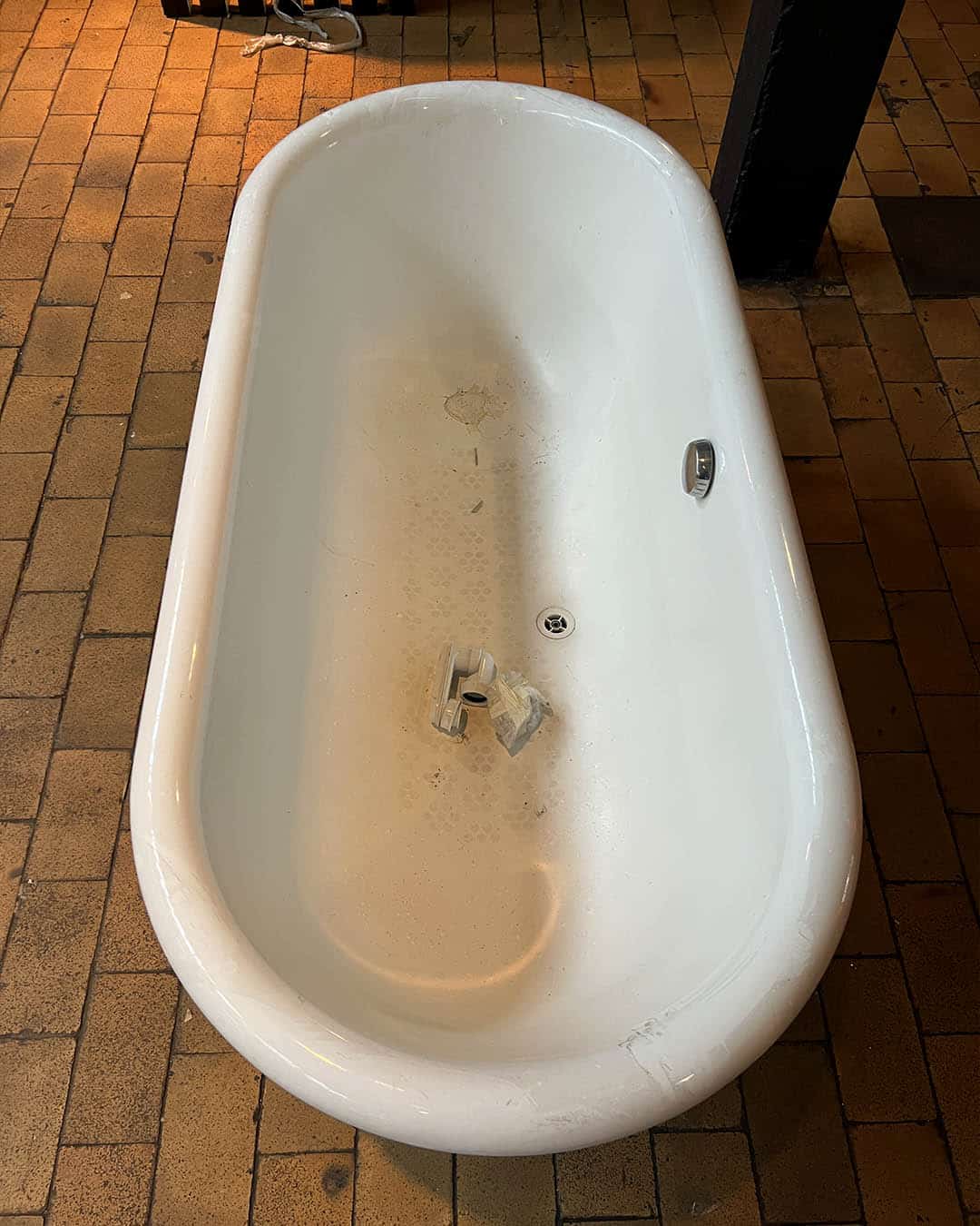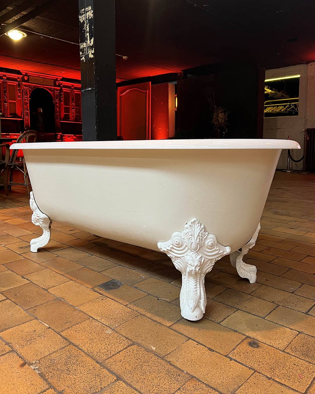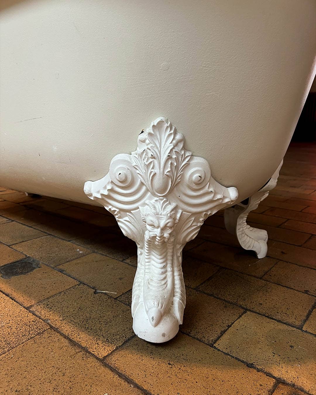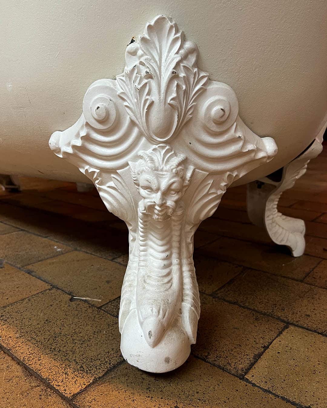 Baignoire à pattes d’aigle en fonte émaillée, pièce iconique au charme ancien, idéale pour une salle de bain de caractère.