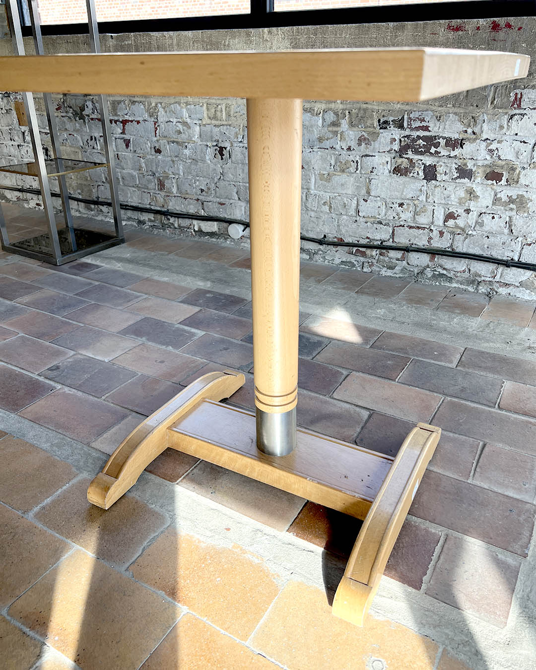 Bistro table with cast-iron base and wooden top, in a timeless, convivial style, ideal for a kitchen, café or authentic interior.