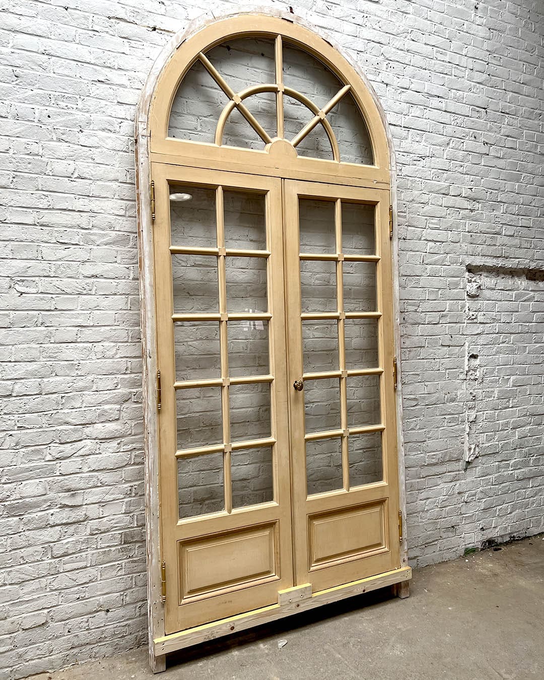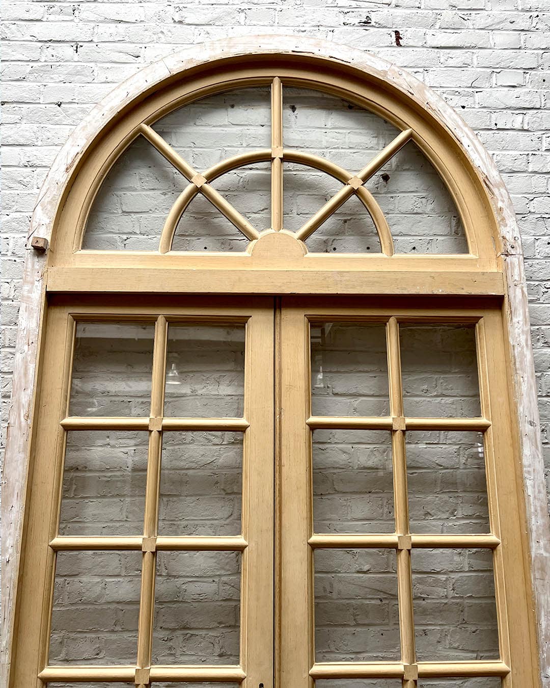 Double porte vitrée avec imposte arrondie et bâti, alliant charme ancien et élégance architecturale pour sublimer vos espaces.
