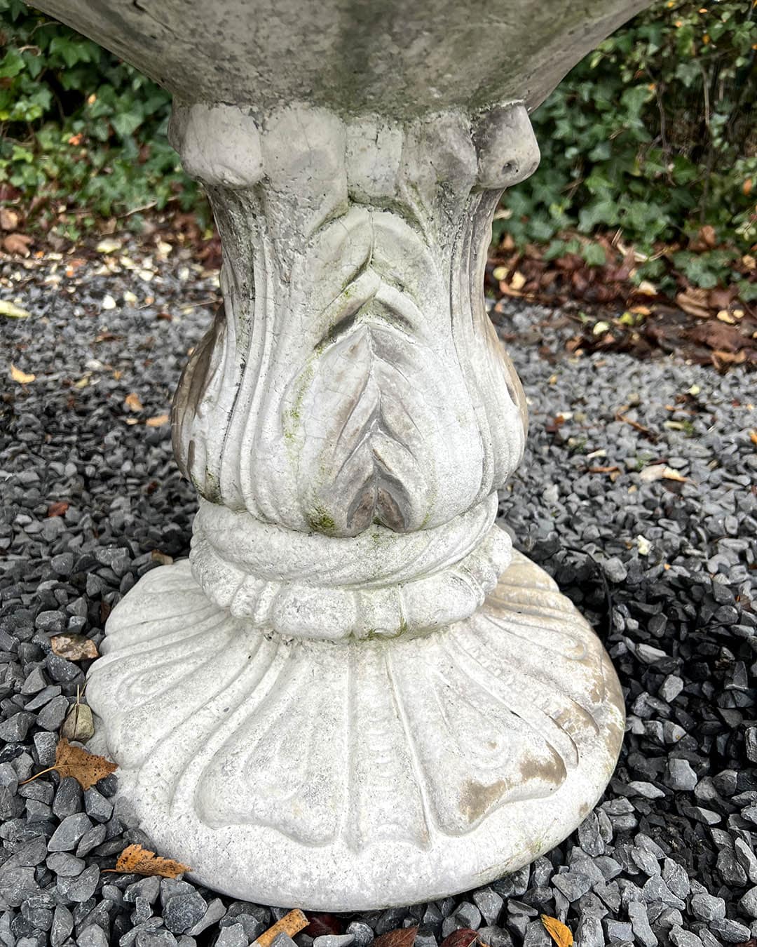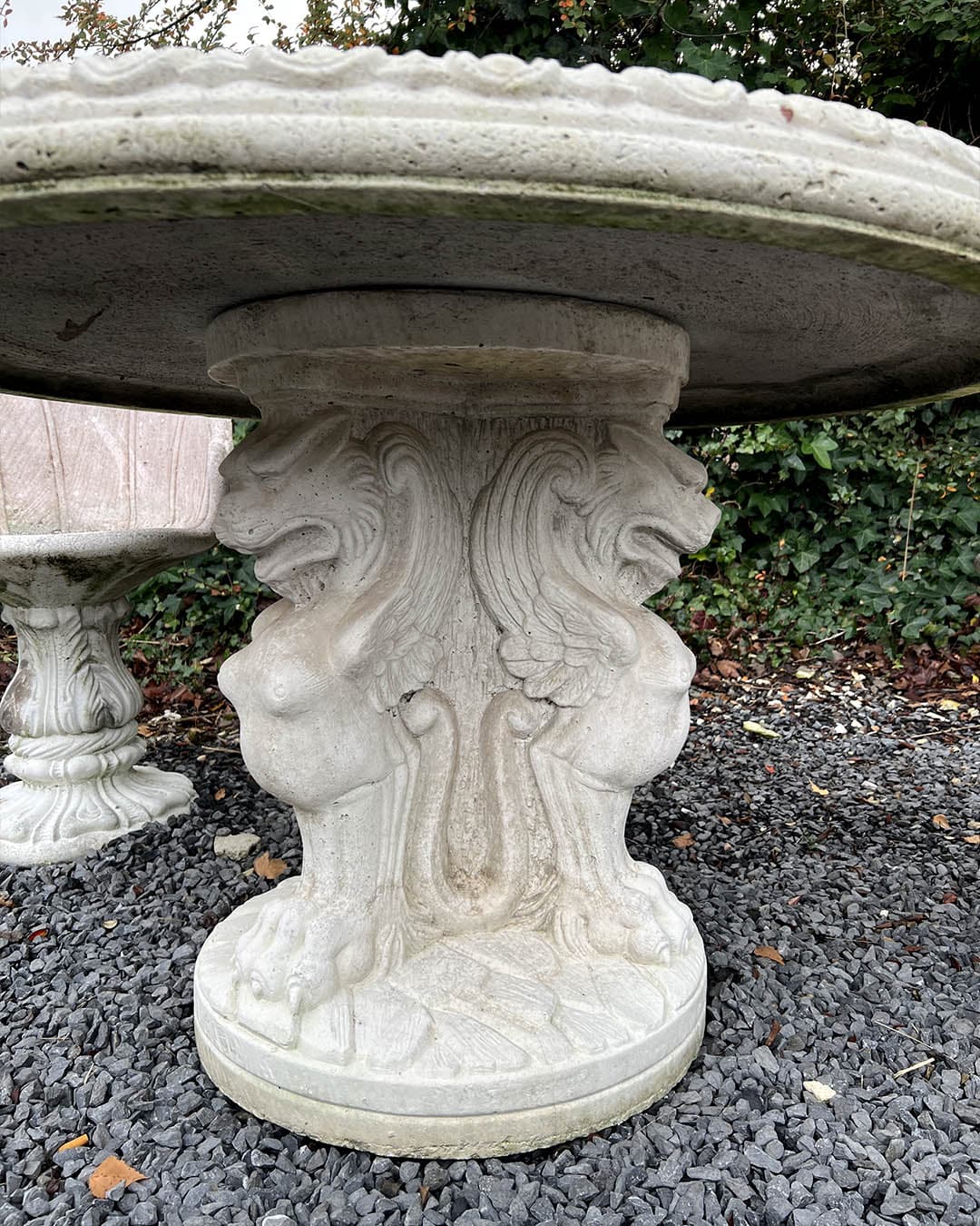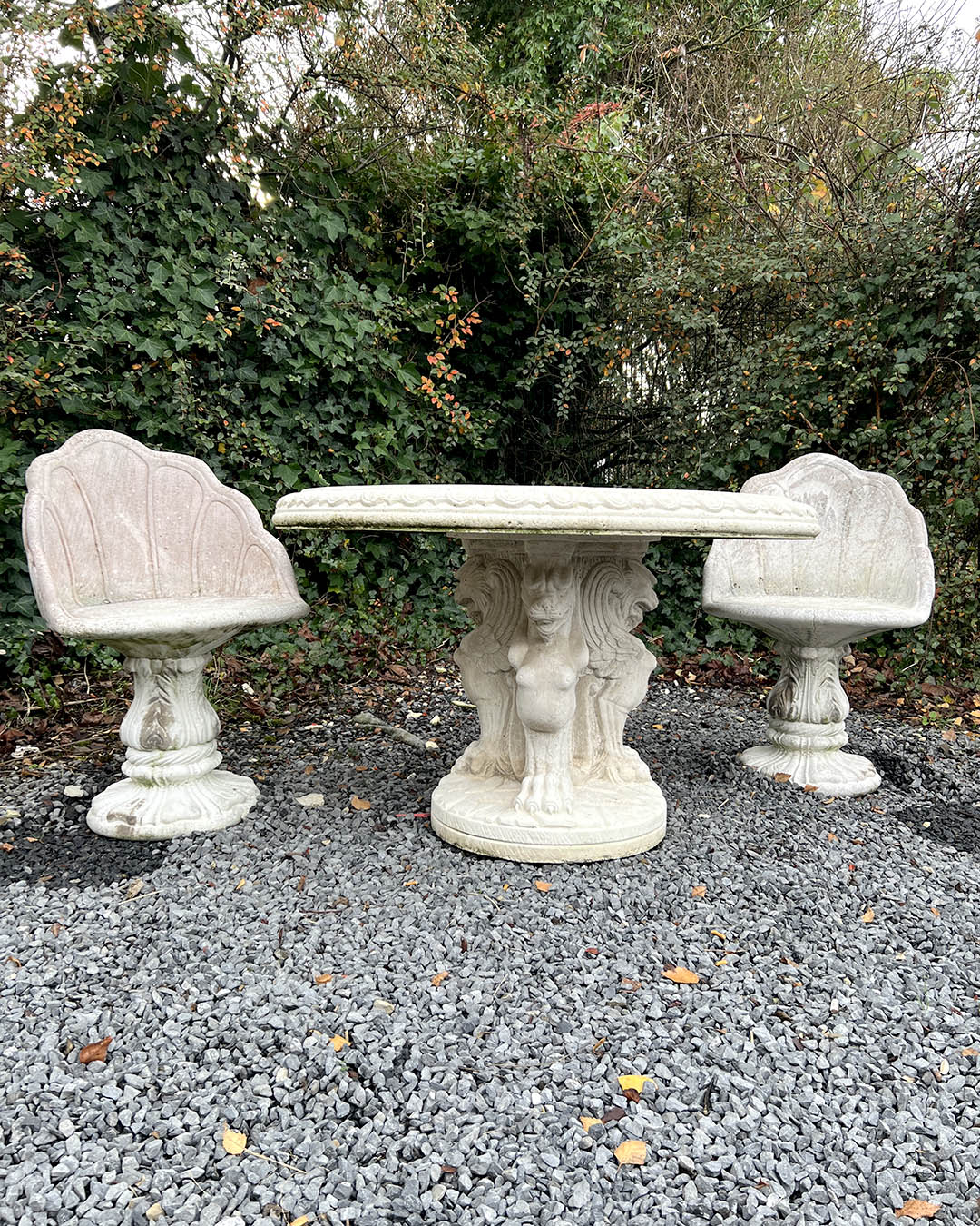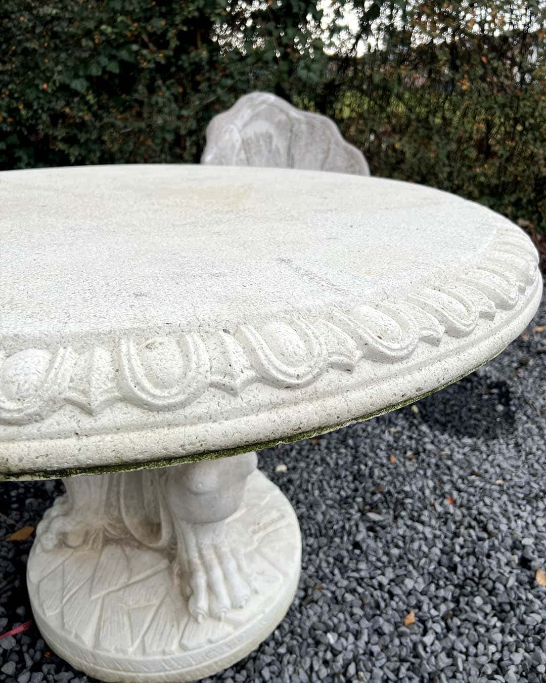 Salon de jardin en pierre reconstituée, au charme classique et à la robustesse durable, idéal pour un extérieur élégant.