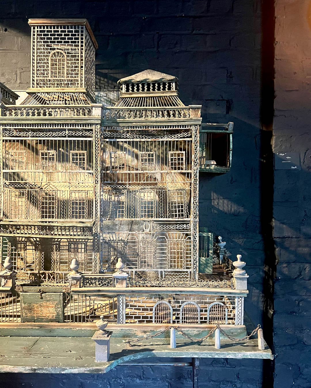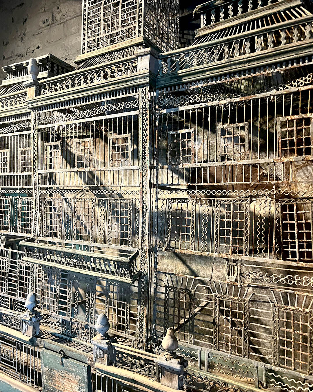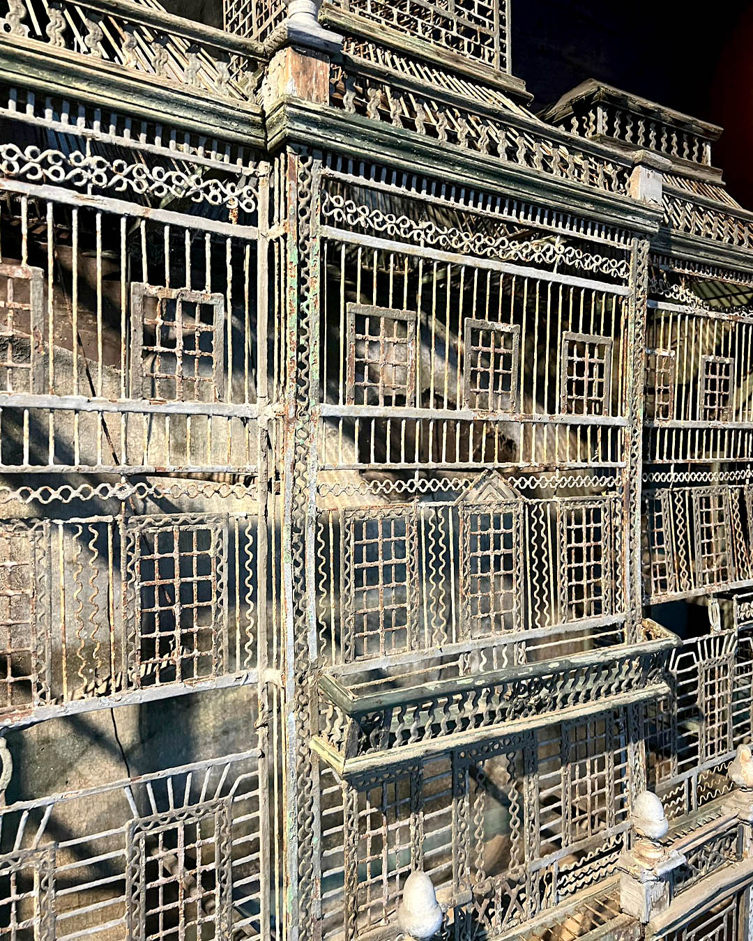 Plus qu’une cage, cette volière est une pièce rare et poétique, fruit d’un savoir-faire minutieux. Les arabesques en métal patiné, les façades symétriques et les tours finement travaillées rappellent l’atmosphère des palais et jardins historiques. Elle incarne à la fois l’élégance du passé et le raffinement intemporel, en faisant un objet de collection et de contemplation.