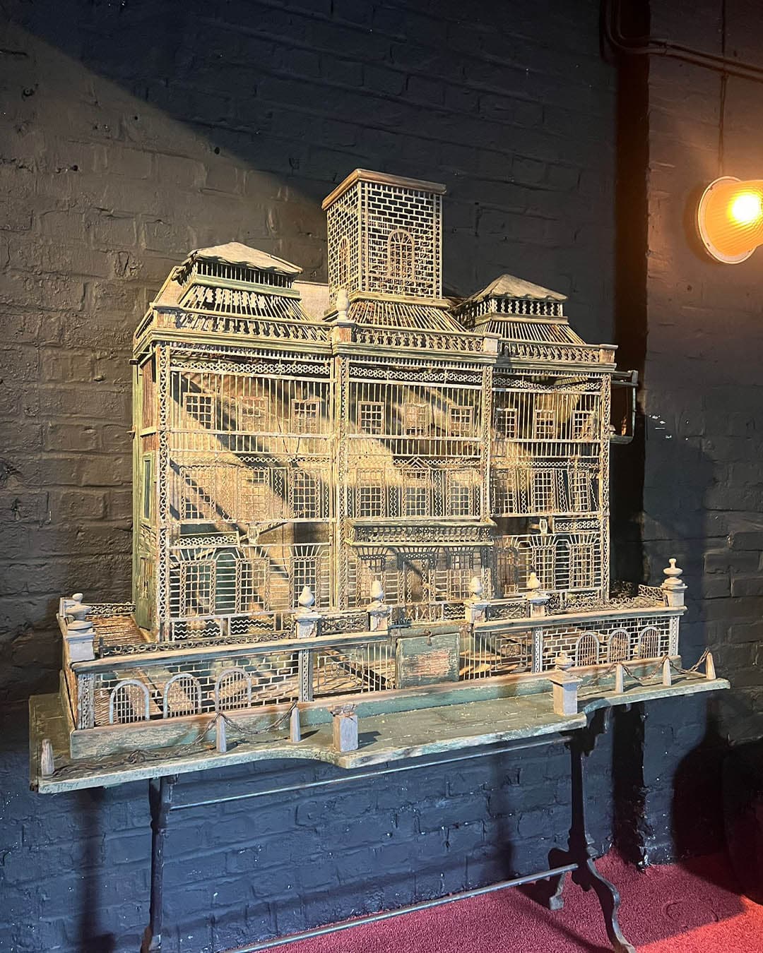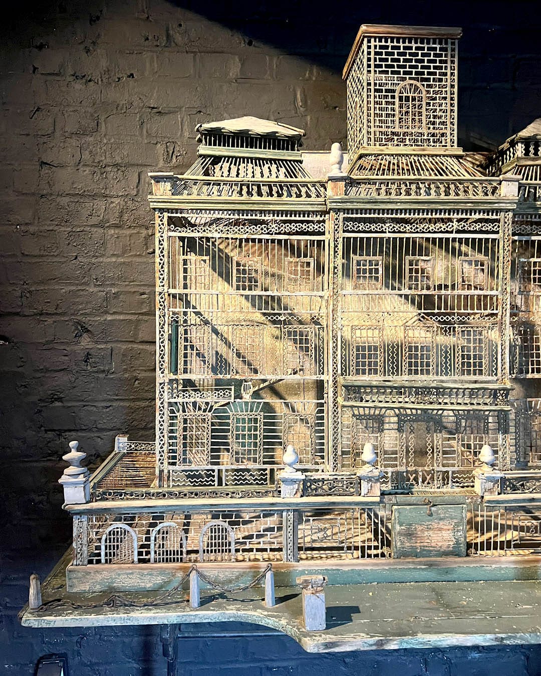 Découvrez cette volière d’exception, véritable chef-d’œuvre d’artisanat ancien. Conçue sous la forme d’un élégant manoir miniature, elle allie la finesse de la ferronnerie à l’élégance des détails architecturaux. Chaque élément – balcons, fenêtres, colonnes et grilles ouvragées – évoque le charme des grandes demeures d’autrefois, transformant une simple volière en une œuvre décorative à part entière.
