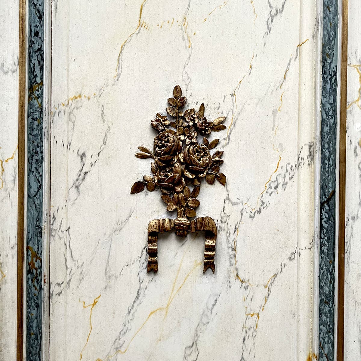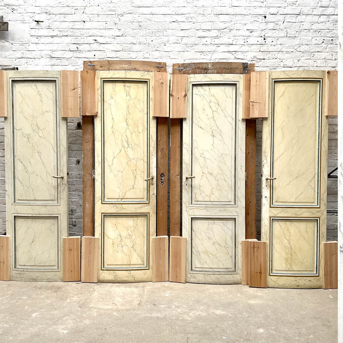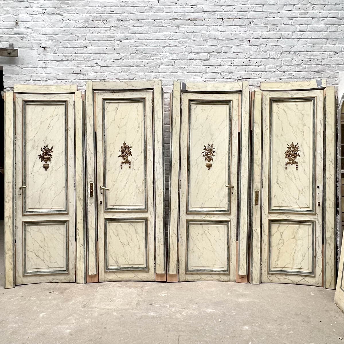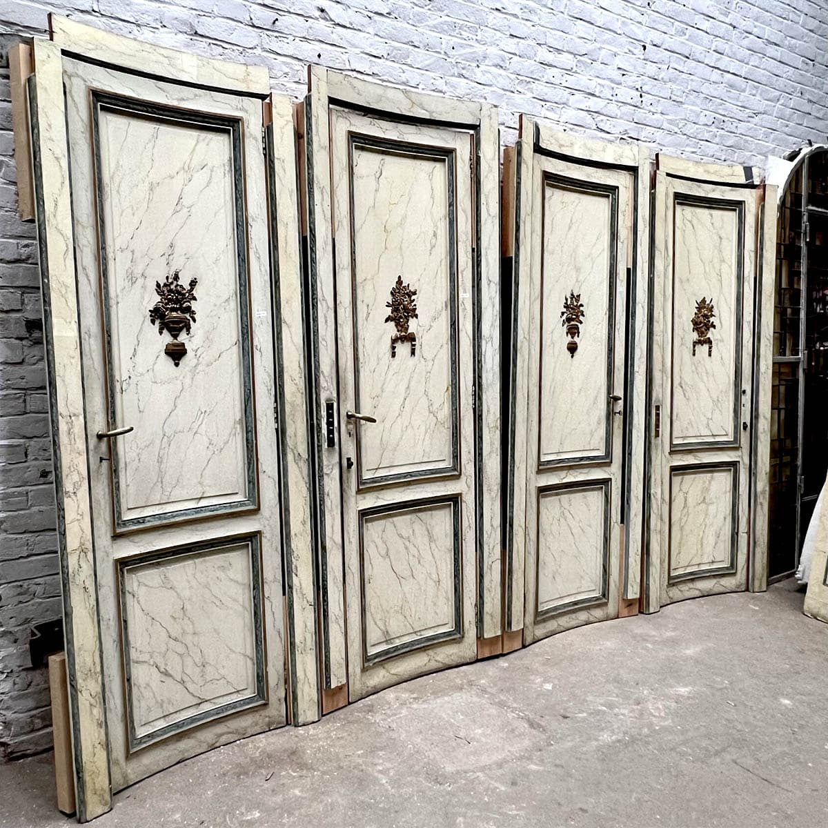 4 portes incurvées et 2 façades de placard motif louis XVI, peinture marbré