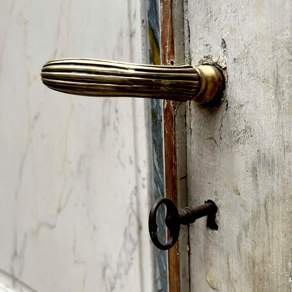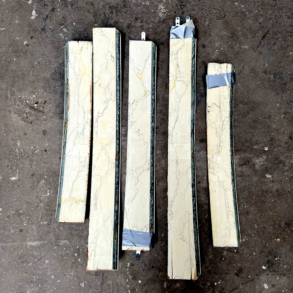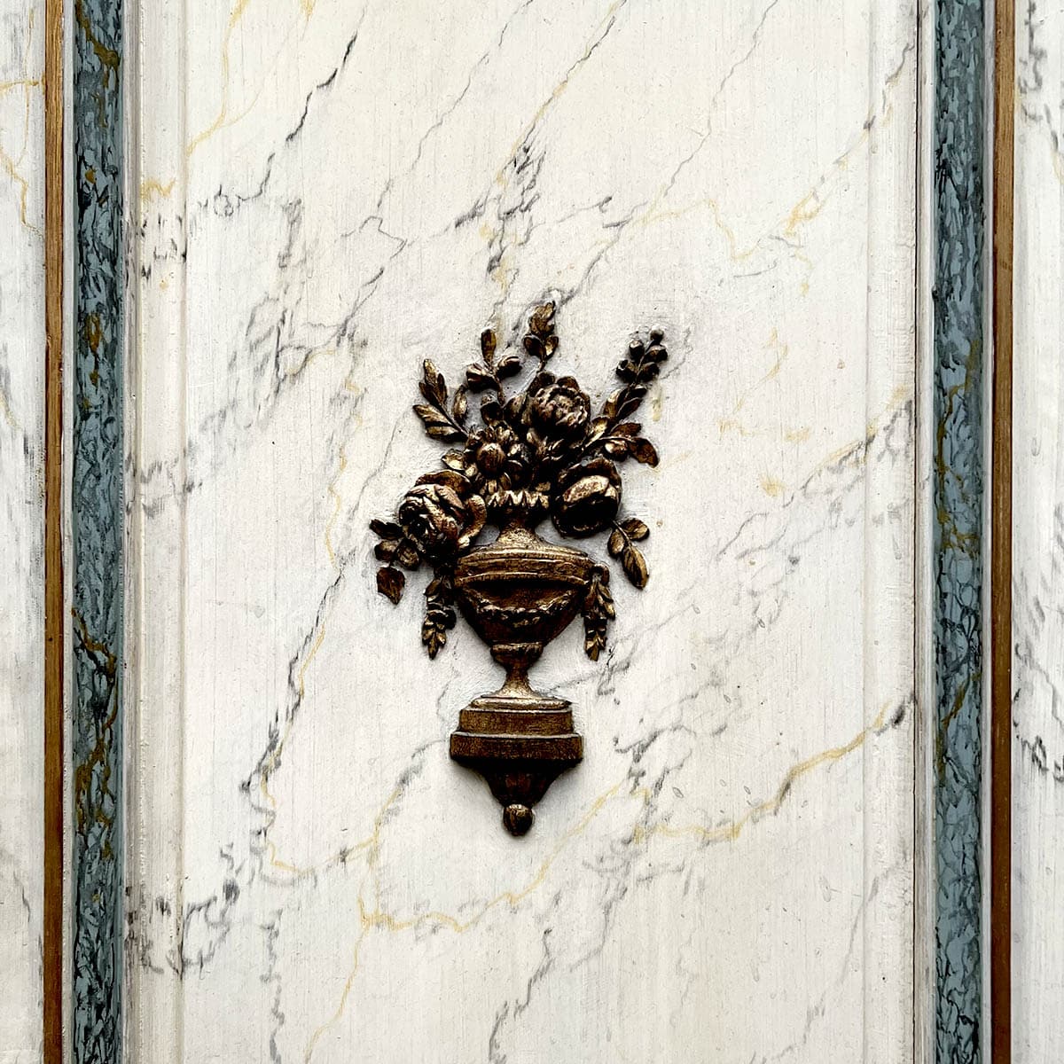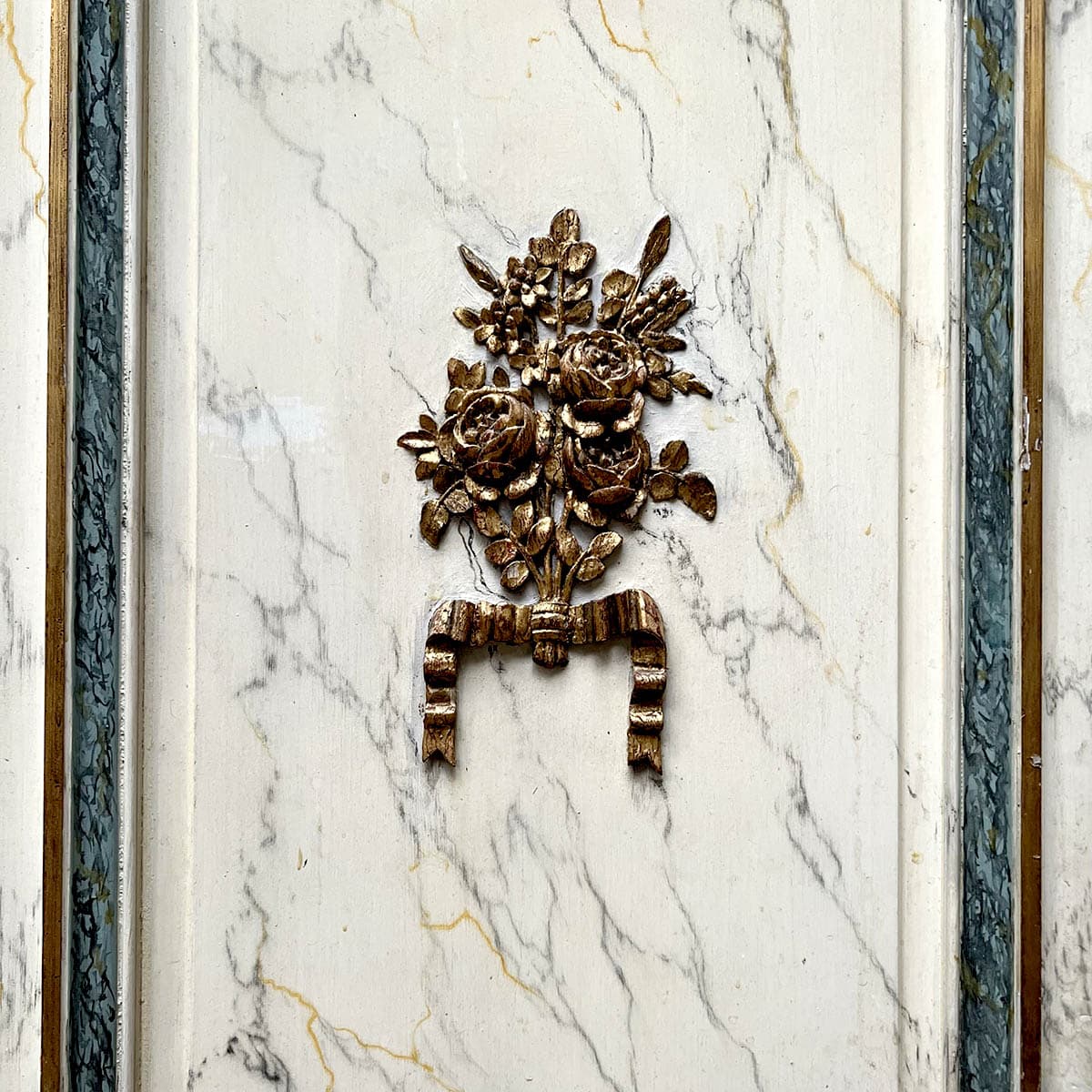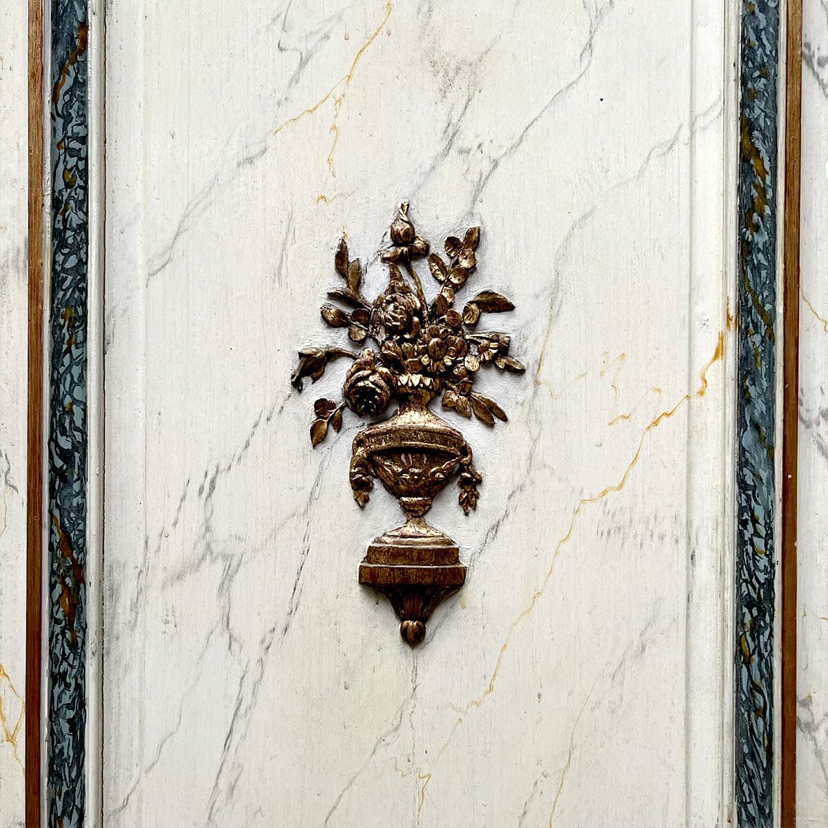 4 portes incurvées et 2 façades de placard motif louis XVI, peinture marbré