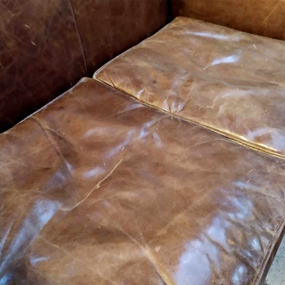 Canapé club moustache 2 places, en cuir, camel. 147x70x60cm.