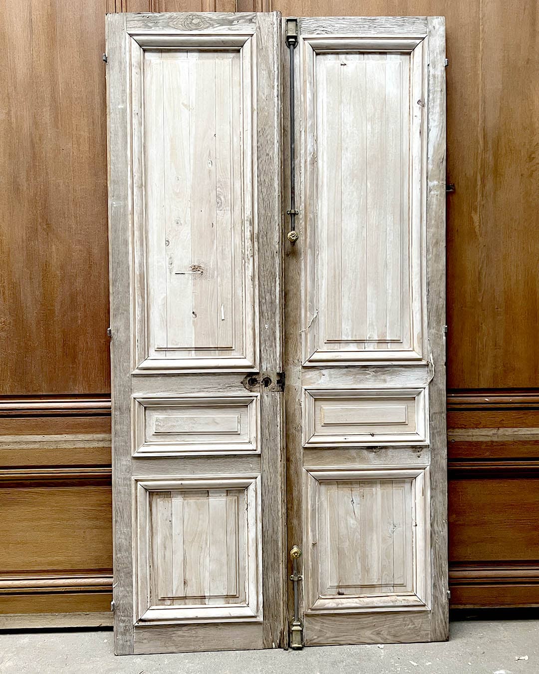 Double porte décapée en chêne, 137×258 cm, au charme authentique et patine naturelle, idéale pour une décoration élégante et intemporelle.