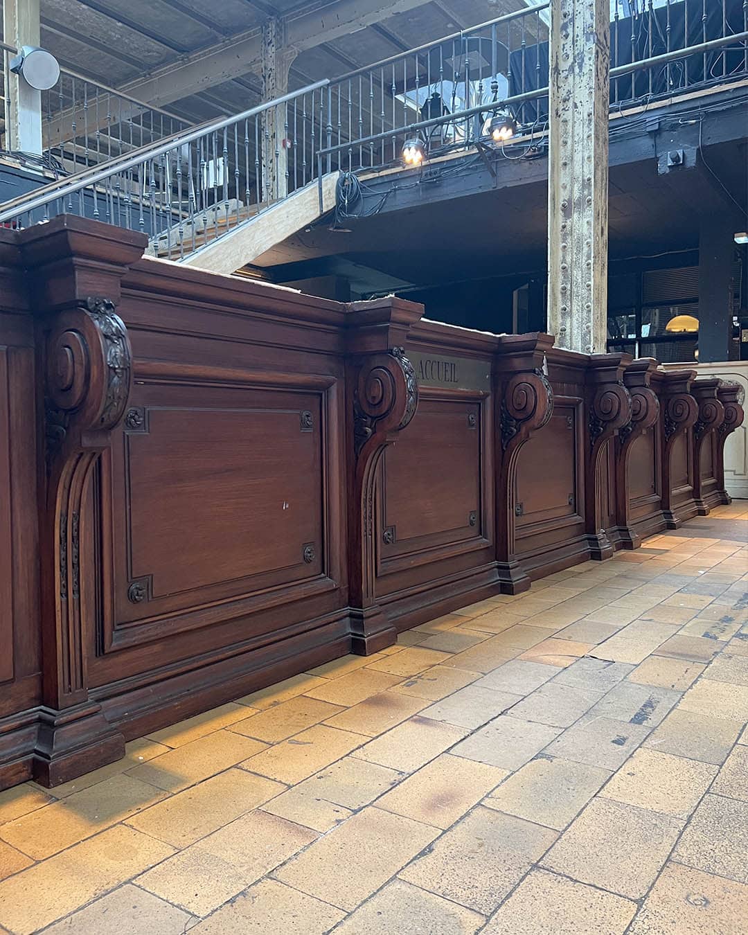 Façade de comptoir de la Banque de France, 15 m linéaires, pièce monumentale au caractère institutionnel et historique.