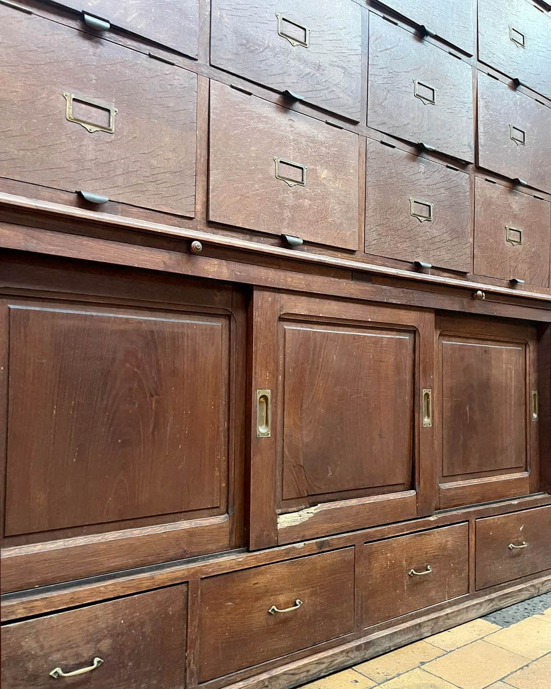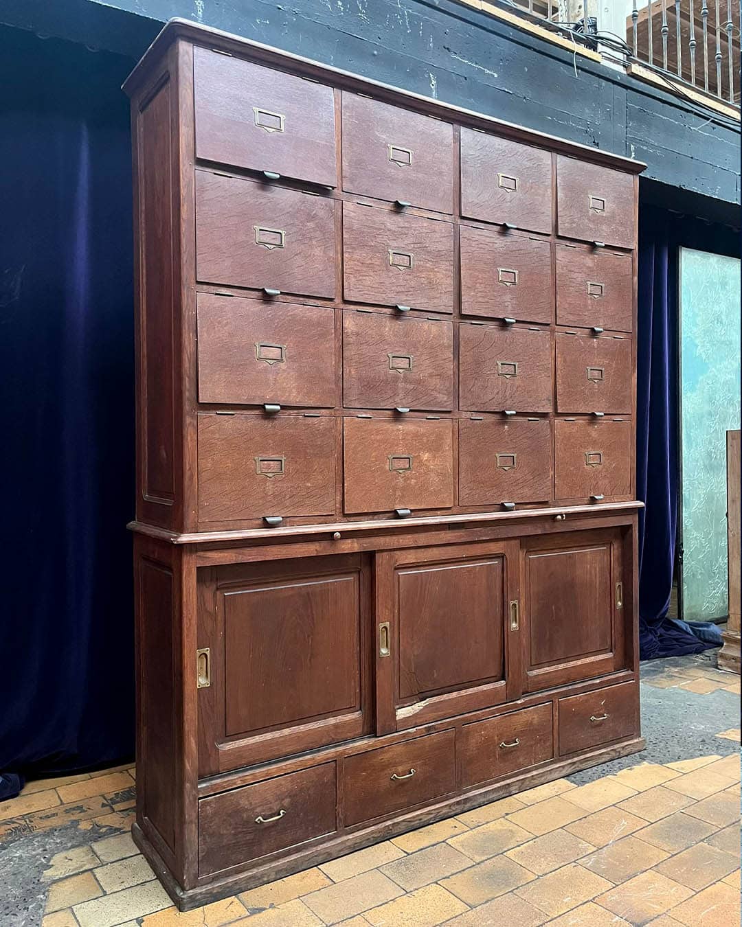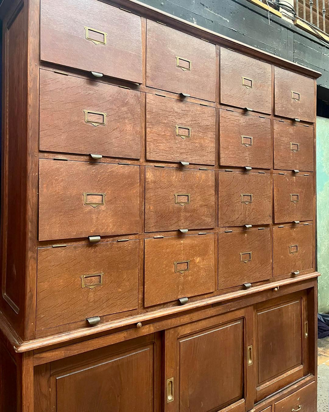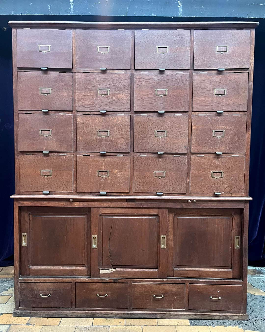 Grand classeur de notaire en chêne, à clapets et portes coulissantes.