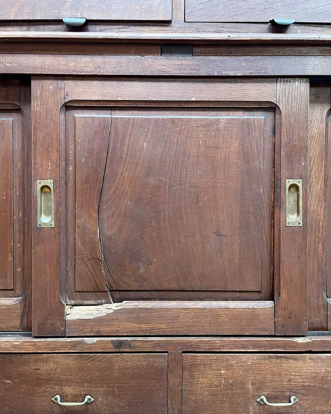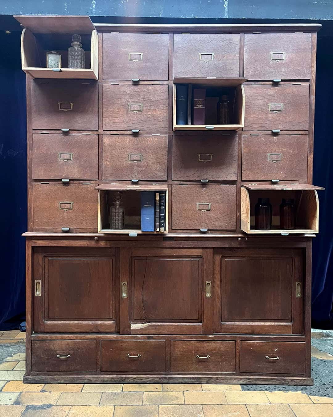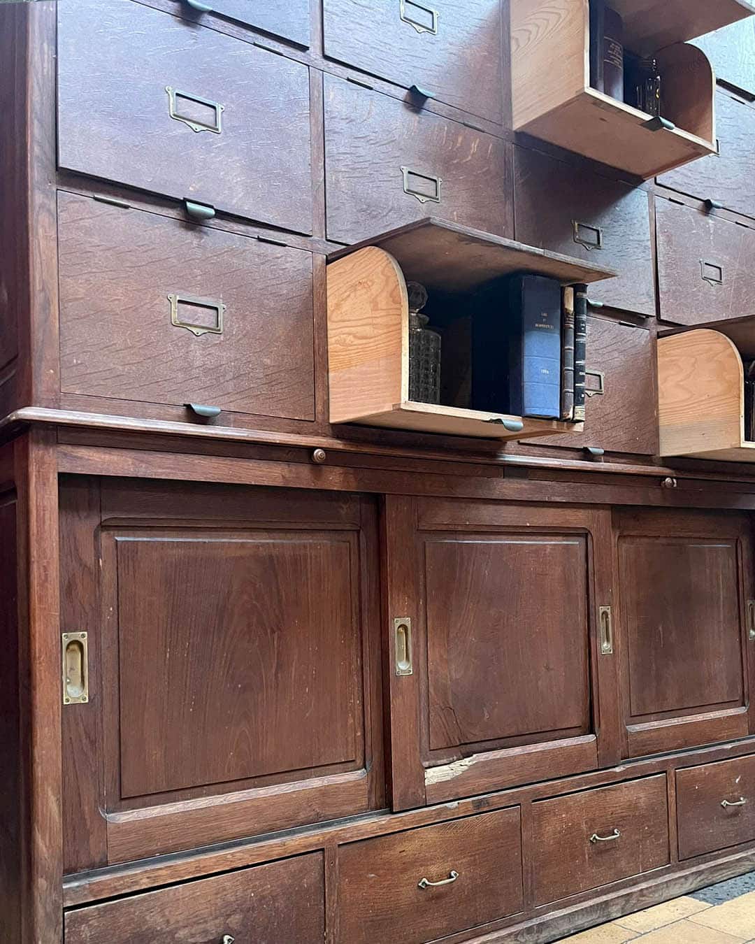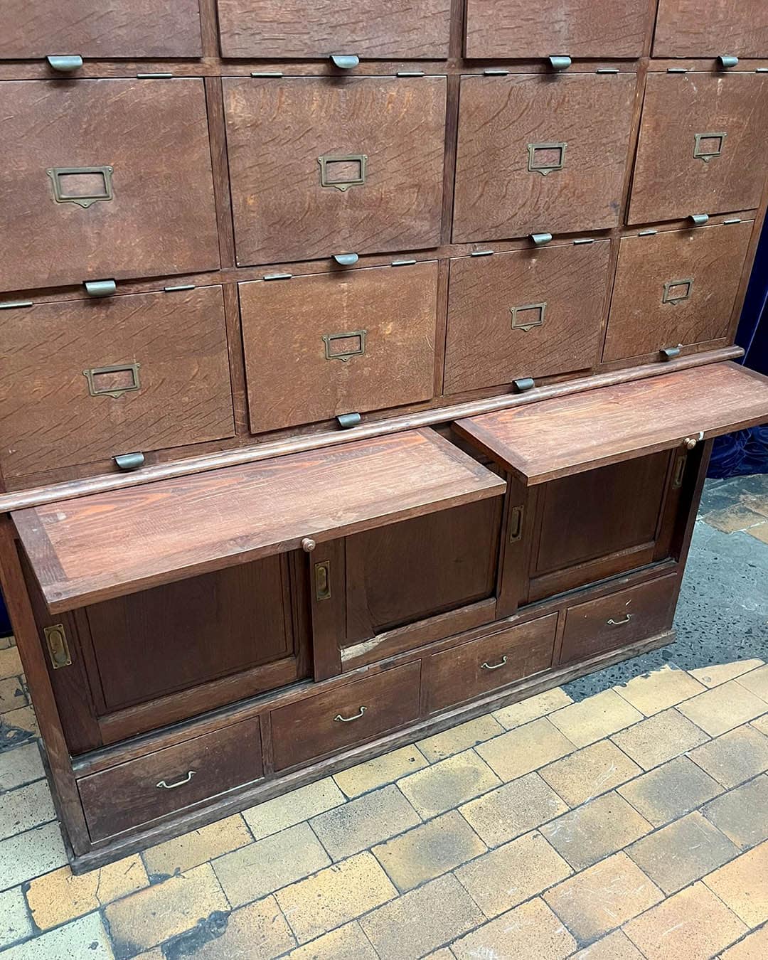 Grand classeur de notaire en chêne, à clapets et portes coulissantes.