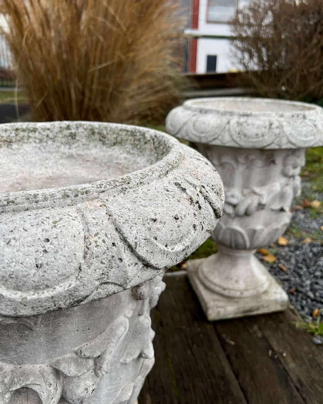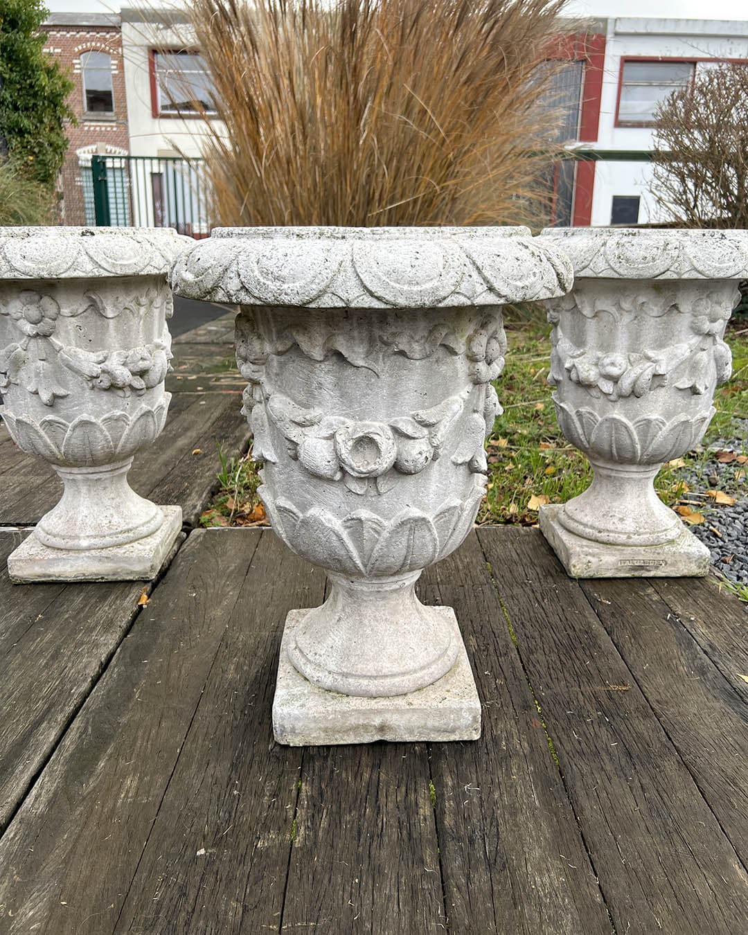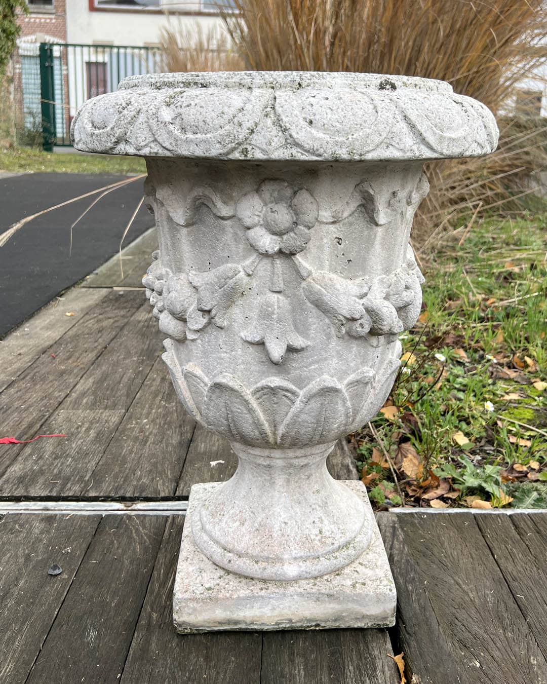 Lot de 3 vases de jardin en pierre reconstituée, au style classique et à la présence élégante, parfaits pour un extérieur de caractère.