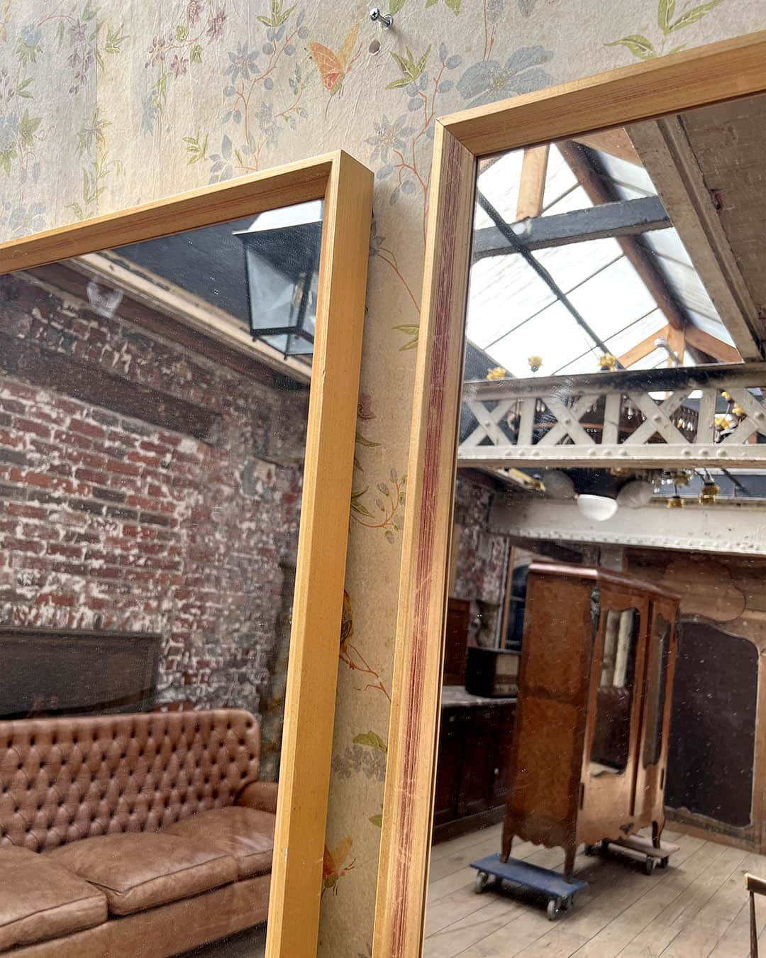 Paire de miroirs en bois doré, au style classique et élégant, parfaits pour apporter lumière et raffinement à tout intérieur.