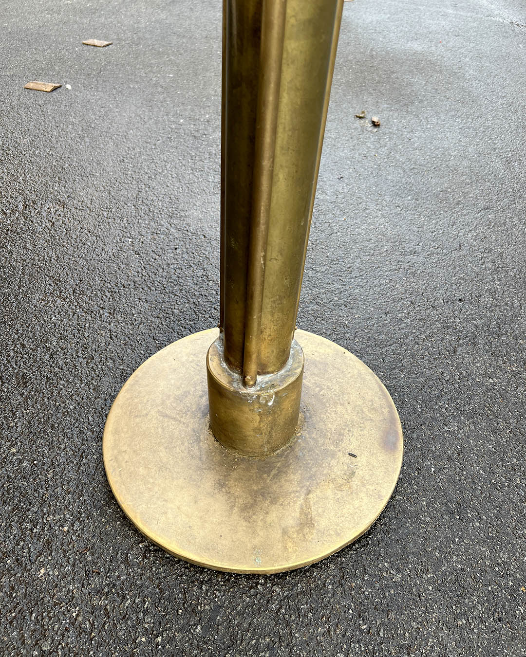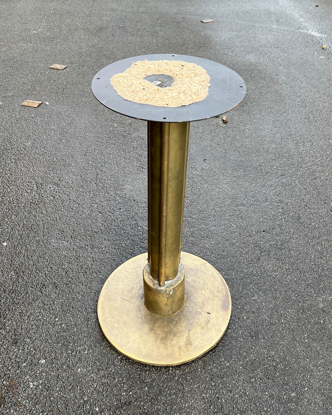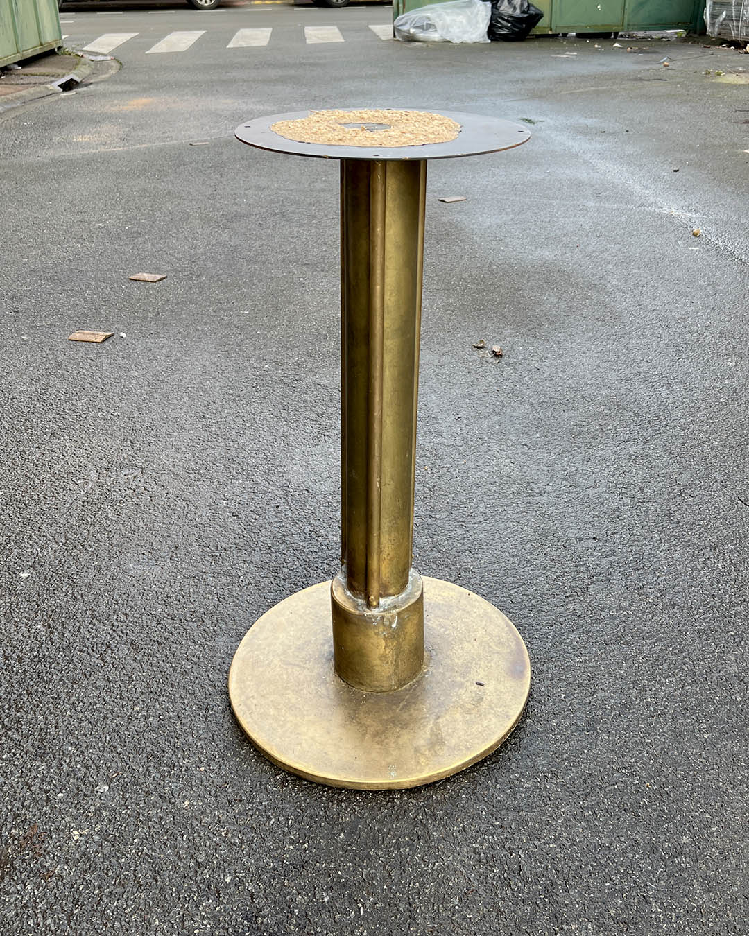 Pied de table de bistrot en laiton, au charme vintage et à la patine élégante, idéal pour une ambiance authentique.