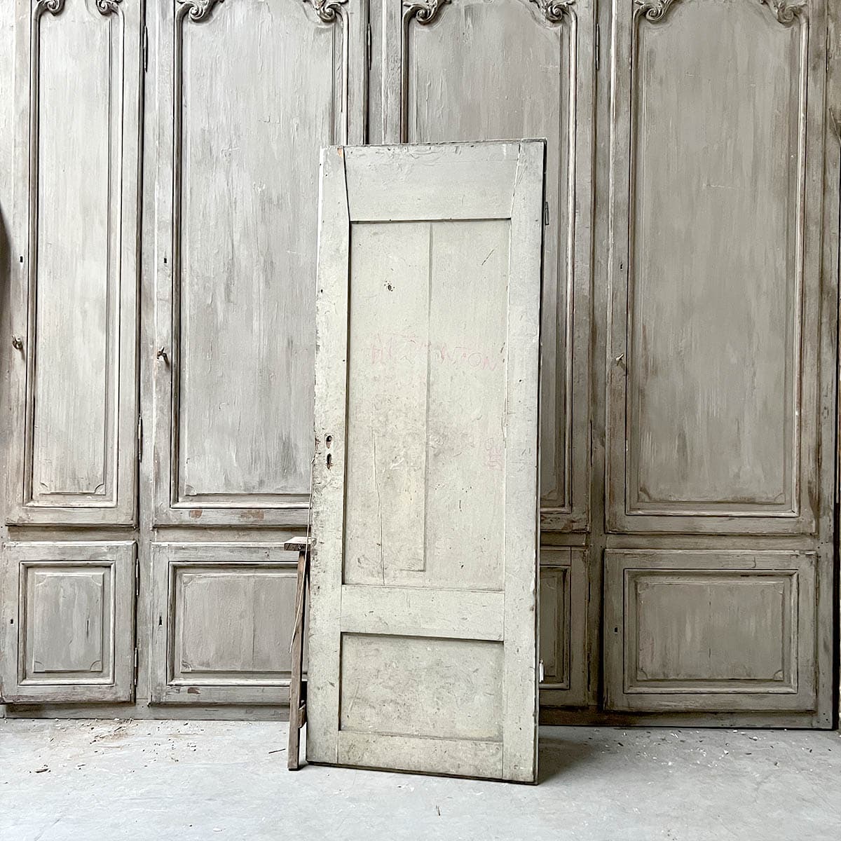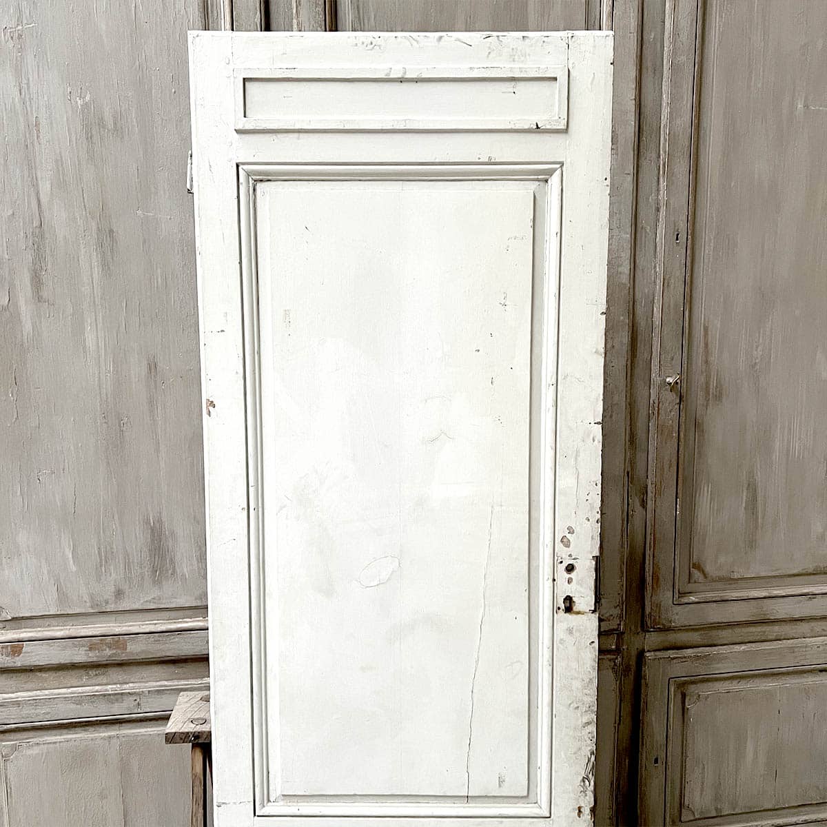 Cette porte de placard ancienne, mesurant 79 cm de largeur et 215 cm de hauteur, est une pièce unique qui allie charme historique et élégance.