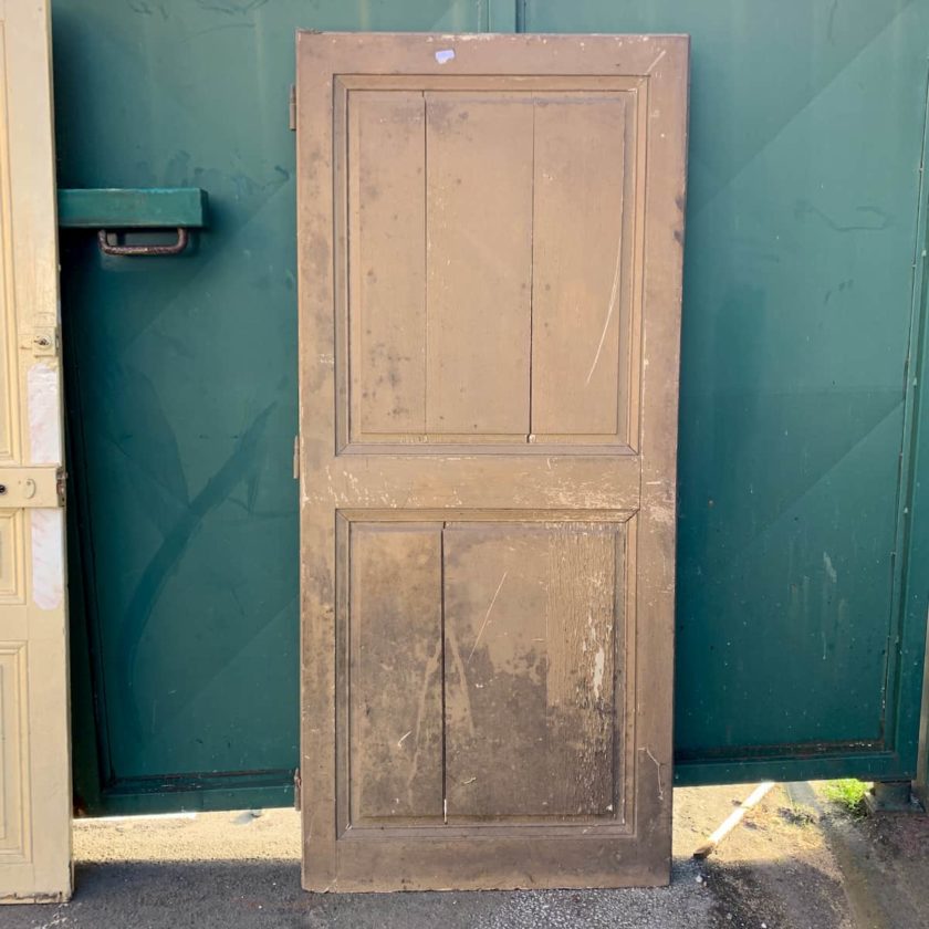 Porte extérieure ancienne, 85x190cm, décapage et transformation (rabotage, bâti, ferronnerie…) sur demande via notre formulaire de contact.