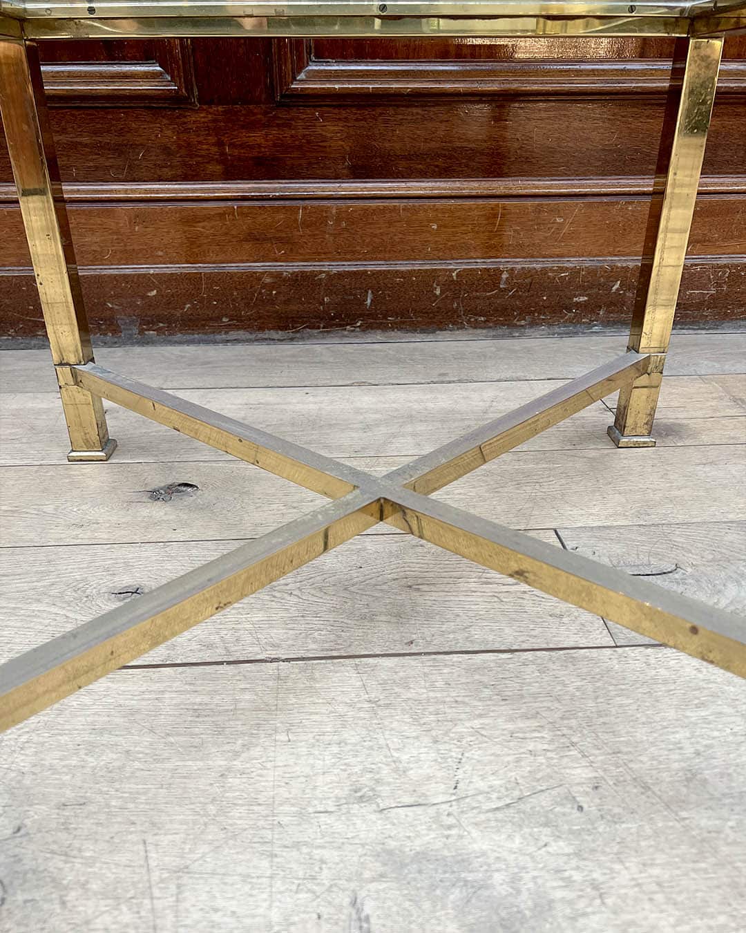 Table basse en métal doré au design raffiné, idéale pour apporter une touche d’élégance moderne à votre salon.
