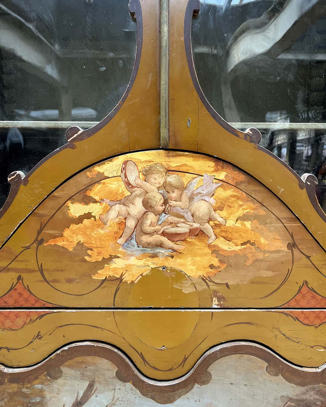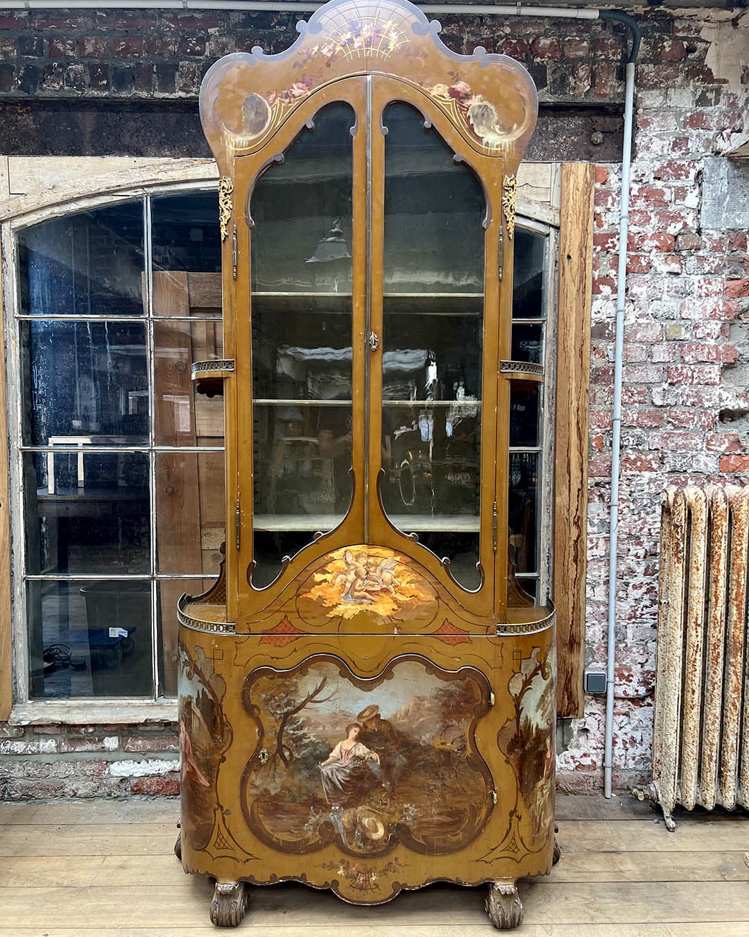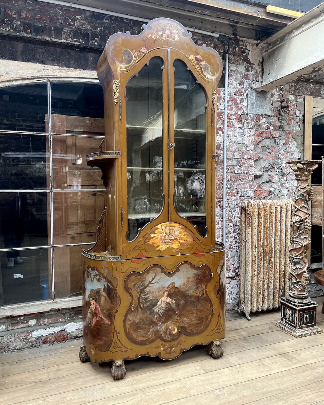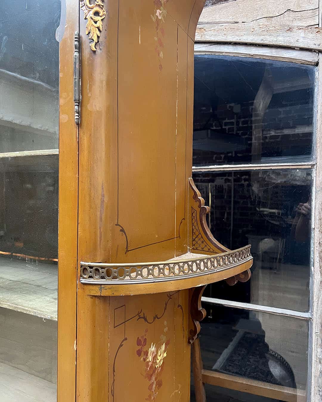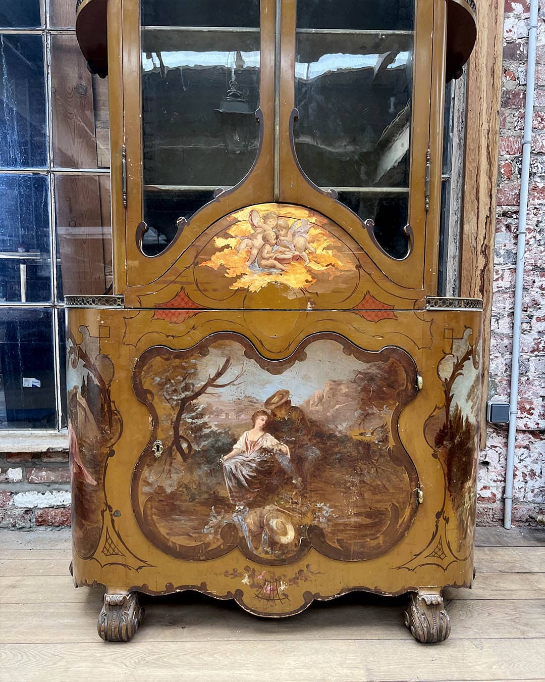 Vitrine peinte italienne, aux lignes élégantes et détails délicatement décorés, idéale pour une ambiance romantique et raffinée d’inspiration méditerranéenne.